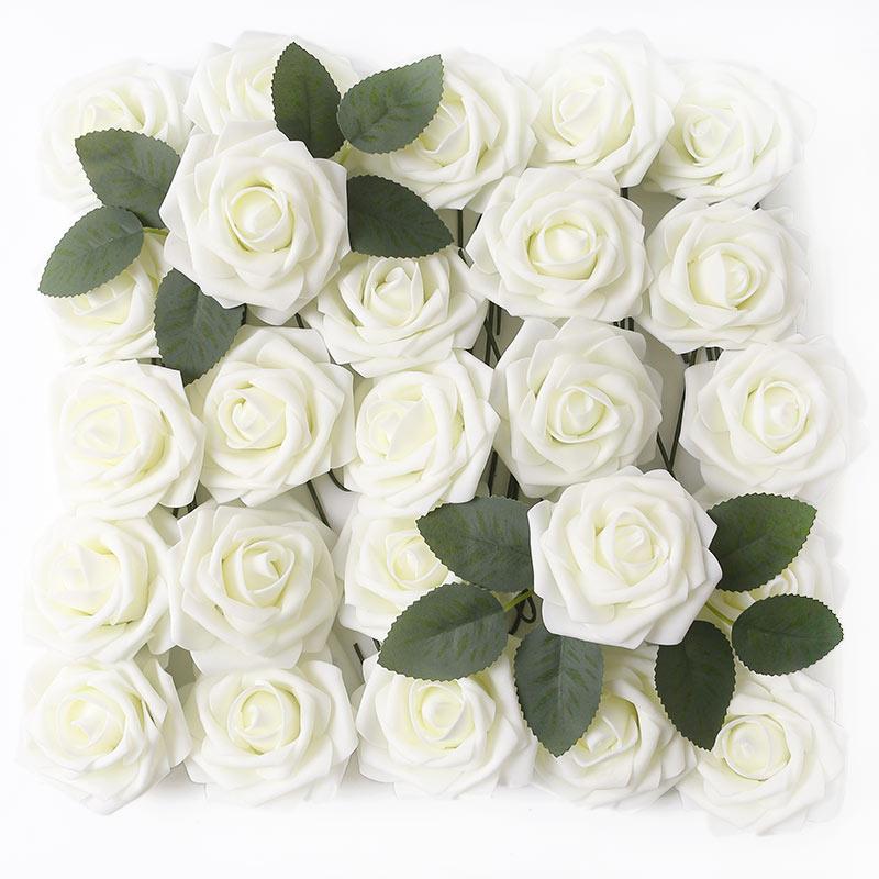20 st Mjölkvita Konstgjorda Blommor Rosor Falska Blommor Stjälk för DIY Bröllopsbuketter Dekorationer Fest Trädgård Hem Rumsinredning