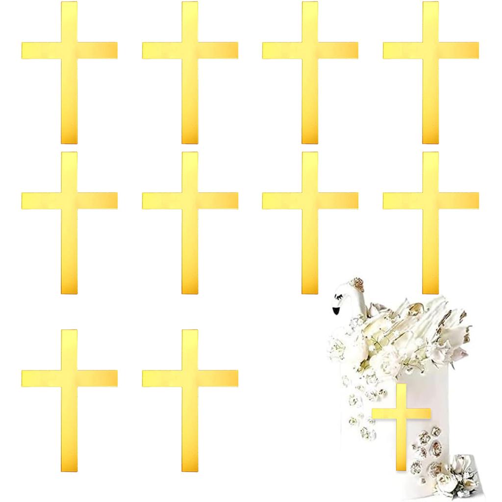 10-delars Set Guld Kors Cupcake Toppers Dop Första Nattvarden Tårtdekoration för Födelsedag Babyshower Festdekorationer