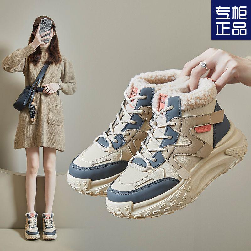 Skor dam nya högtoppsskor tjocksulade höjande pappaskor extra tjocka sammetsskor vintersportskor