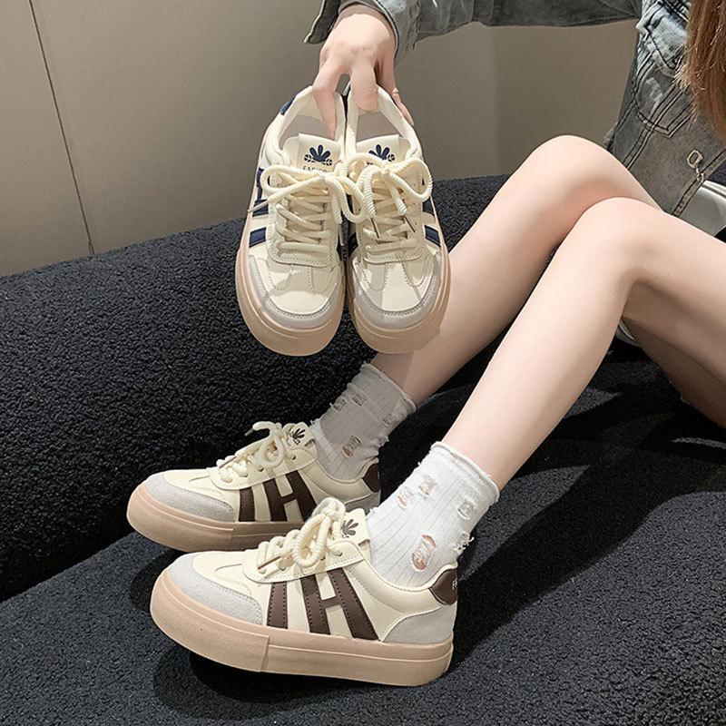 Plattformsulade tyska träningsskor dam nya vår och höst mångsidiga student snörskor canvas skor vardagliga sportskor