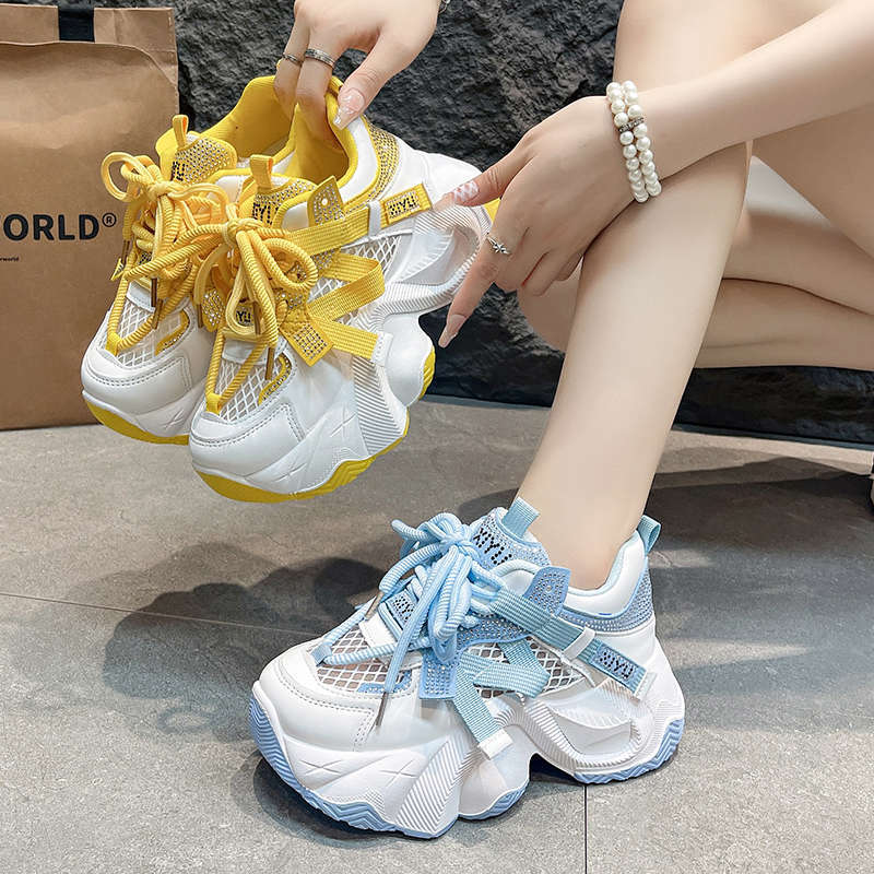 Nya höstskor för damer i andningsbart mesh, tjocksuliga höjdökande pappa-skor, mångsidiga vardags- och sportskor, löparskor