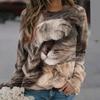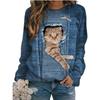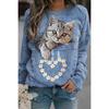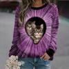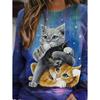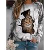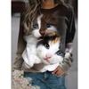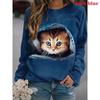Höst 3D Katt Tryckta Sweatshirts Trendiga Casual Sport Långärmade Dam Sweatshirts