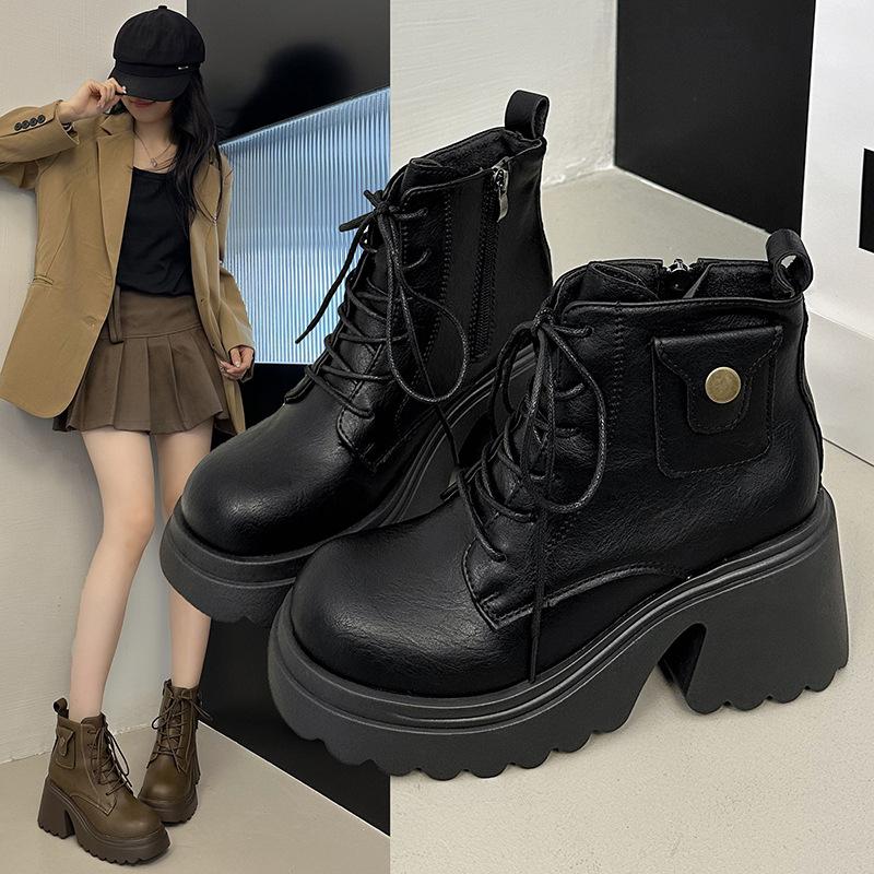 Stora brittiska högklackade korta stövlar dam höst nya retro muffin små tjockbottnade tunna Martin-stövlar