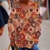 2025 Ny Dam Patchwork Casual V-ringad Långärmad Pullover Digitaltryckt Topp