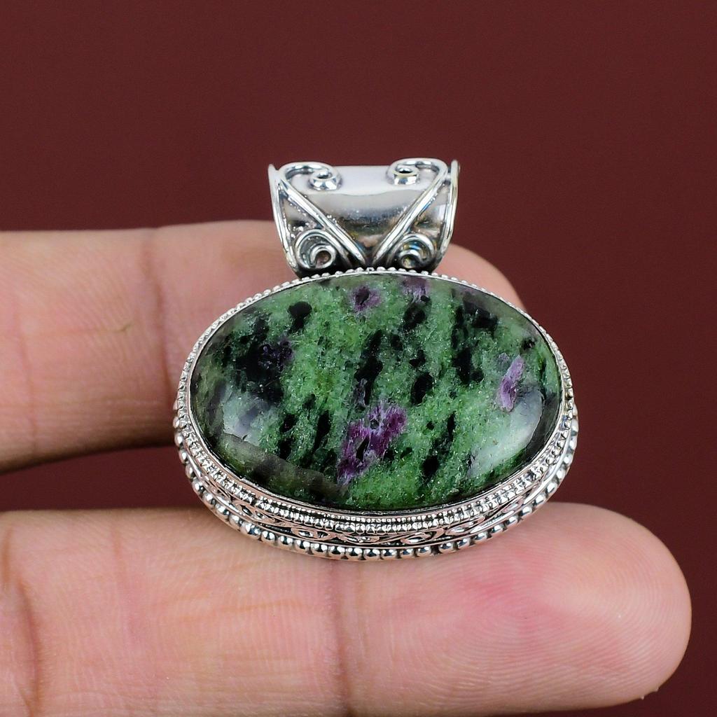 Ruby Zoisite Pendant Vintage Pendant Original Gemstone Jewelry 925 Sterling Silver Pendant Birthstone Pendant Handmade Jewelry Gifts For Him