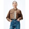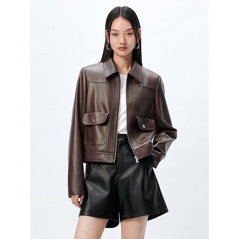 Peacebird Women's Maillard Style Lapel PU Leather Short Jacket