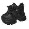 Fashion Women Leather Platform Sneakers Spring Trainers White Shoes 10CM High Heels Wedge Outdoor Sport Shoes Breathable Casual Shoes