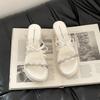 French muffin bottom bow thick bottom one-word slippers girls summer fashion with skirt rhinestone slope heel cool slippers