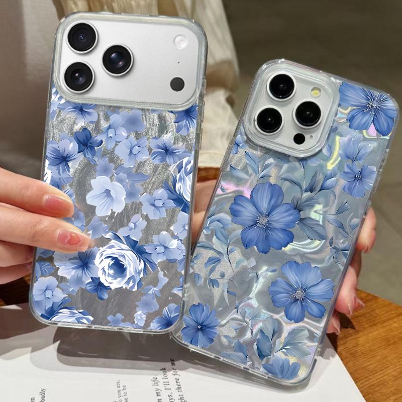 Blue Flowers Pattern Laser Phone Case For iPhone Air 17 16 15 14 13 15 Pro Max 16 15 Plus 13 17 Pro Shockproof Hard Cover Funda