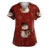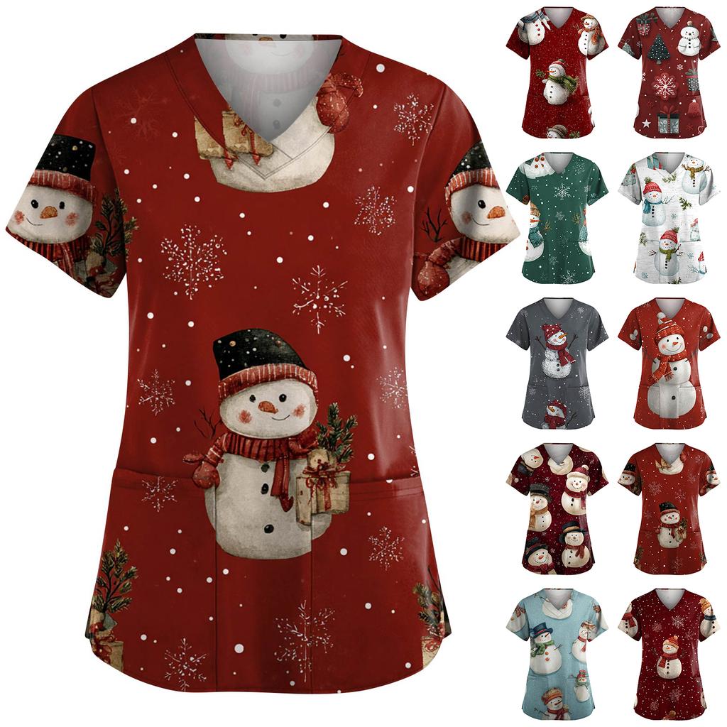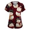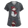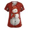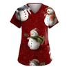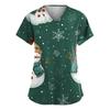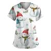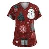 Dammode V-ringad Kortärmad Arbetskläder Med Fickor Jultryck Topp Vårdgivare Uniform