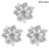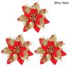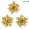 3 st 14 cm Julblommor Glitter Konstgjorda Röda Guld Blomhuvud Bär DIY Julgrans Prydnader Dekorationer för Hem Nyår