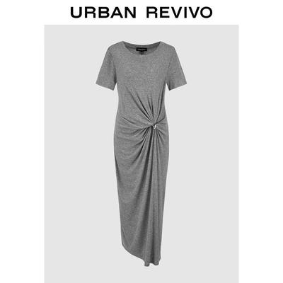 UR 2025 Spring Women's Casual Pleated Hollow Back Short Sleeve A-Line Dress