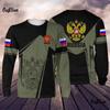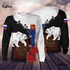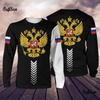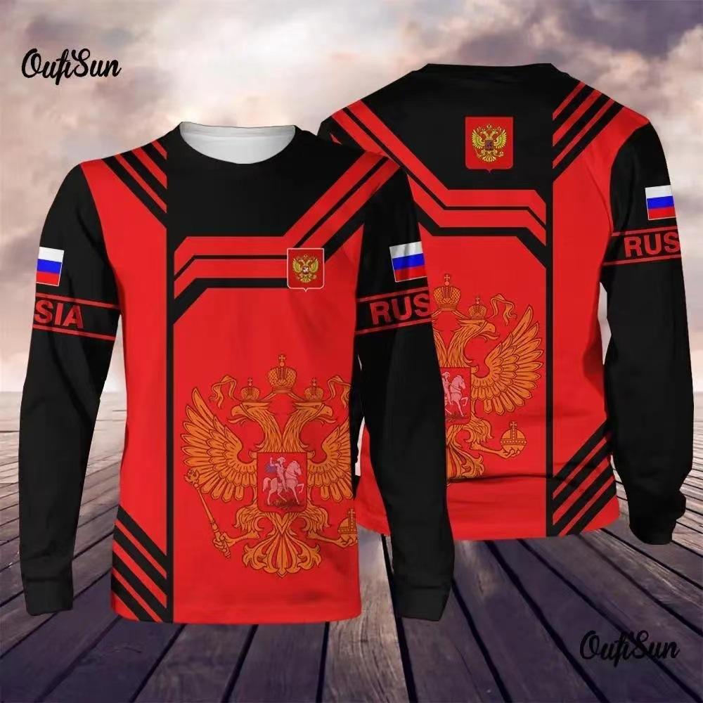 Round Neck 3D Russian Printed Top Casual Long Sleeved Men's T-shirts - Soft Medium Stretch Polyester Fabric Spring and Autumn Relaxed Fit Clothing