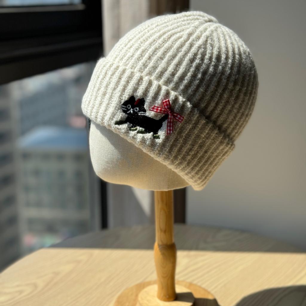 New Woolen Cute Puppy Embroidered Knitted Hat for Women in Autumn and Winter Japanese Style Warm and Versatile Small Pullover Hat with Face