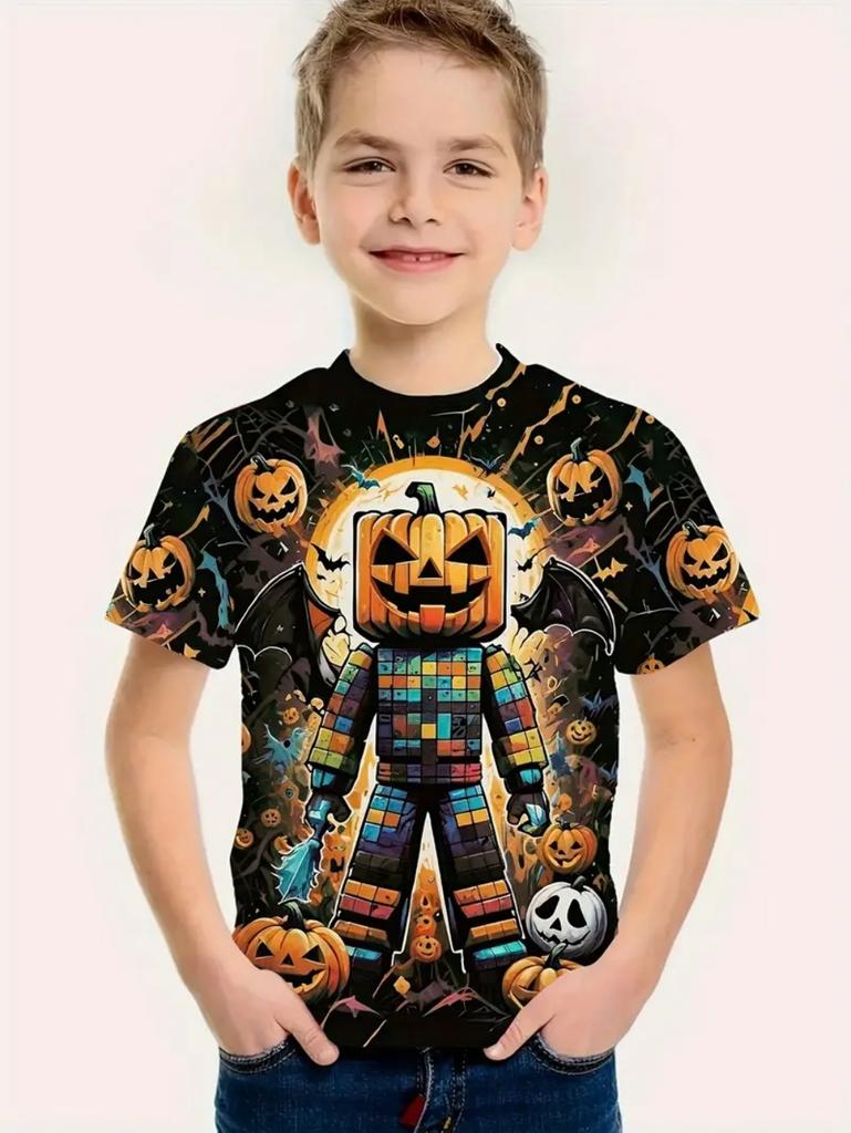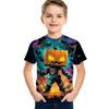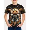 Rundhalsad 3D Robot & Pumpa Grafiskt Tryckta Kortärmade Barnpojks T-shirts - Mjuk Medium Stretch Polyestertyg Sommar Avslappnad Passform Kläder