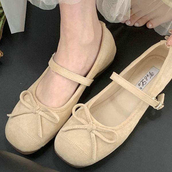 Franska mocka Mary Jane-skor dam 2025 nya rosett fyrkantig tå balett en-ord spänne höjande skor