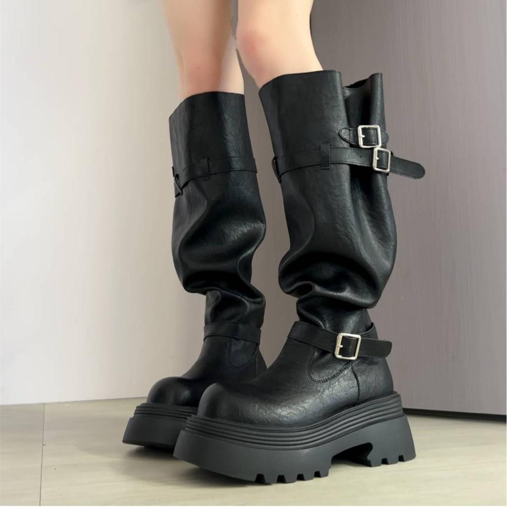 Retro fashion pants boots women's 2025 autumn new thick-soled round head heightening stacking boots but knee boots women