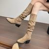 Mode stövlar dam 2025 höst och vinter nya mocka retro tjock klack höga plyschstövlar dam veckade pile långstövlar dam