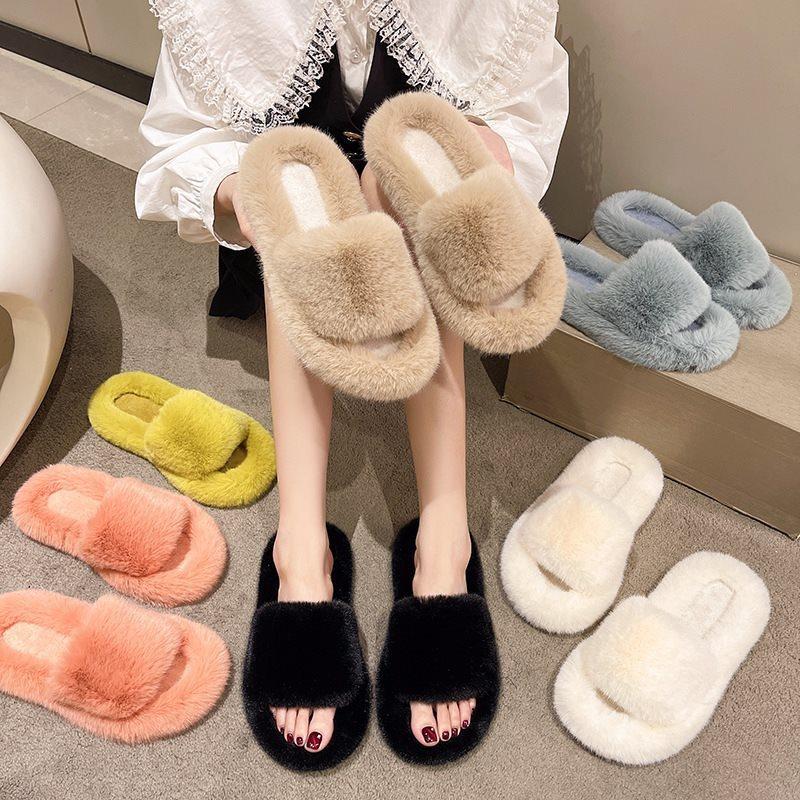 Plush fluffy fashion slippers women wear thick-soled fluffy dragging red shoes spring and autumn fluffy network 2025 autumn and winter new models