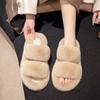 Kliv på den stora storleken nya skor bomull dragkänsla hem hår drag hår tofflor dam plysch vår och höst ord skit 2025 platt botten