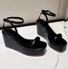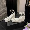2025 Summer New Product Fashion Simple One Word Buckle High Heel Waterproof Platform Thick Bottom Slope Heel Sandals for Women
