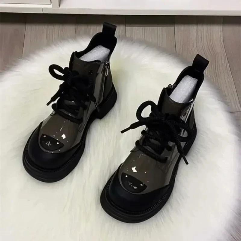 2024 Vinter Nya Damstövlar Brittisk Stil Mode Bomullsskor med Tjock Sula och Tjocka Korta Stövlar Bomullsstövlar Damskor