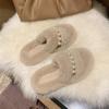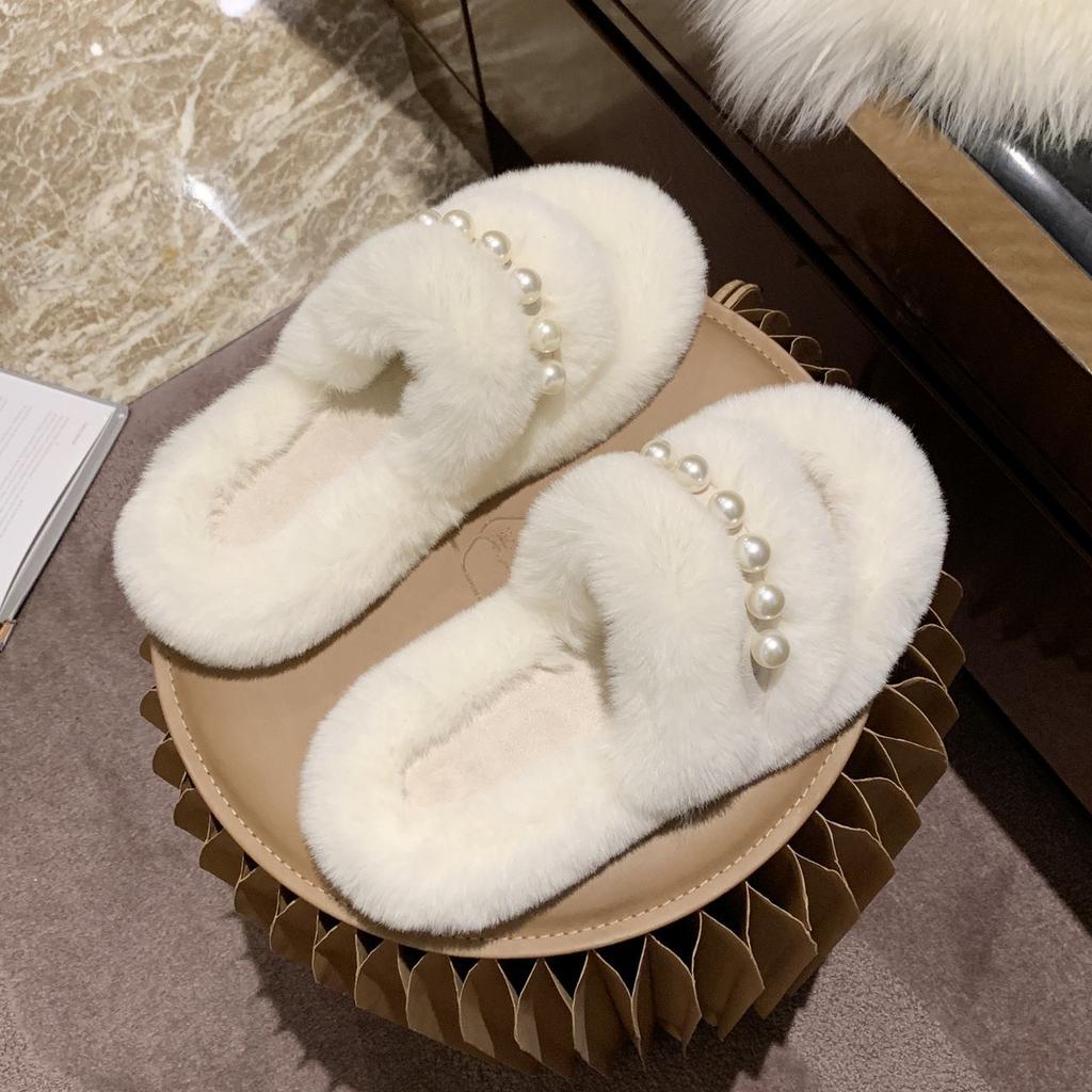 Ins fluffy slippers women's wear summer Internet celebrity 2025 new cute pearl rabbit plush cross cotton drag tide