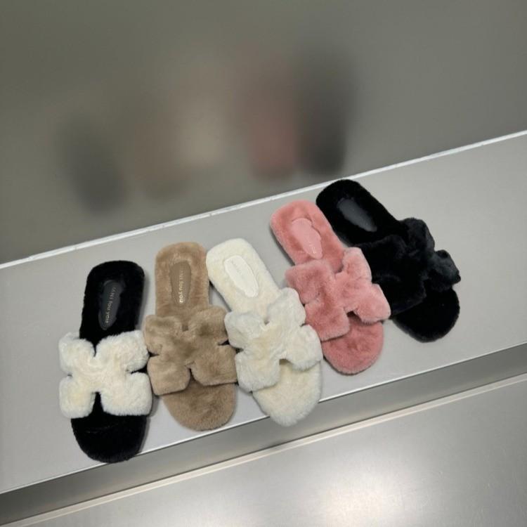 Thick-soled fluffy slippers women's wear 2025 new autumn and winter Internet celebrity rabbit fluffy fluffy shoes one-word cotton slippers