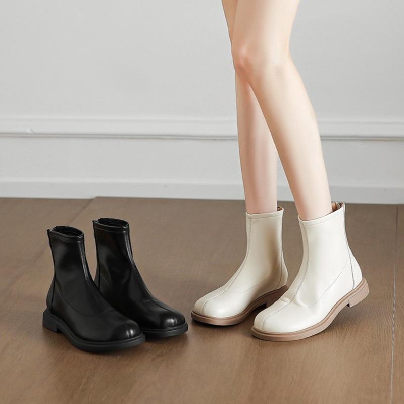 Små fötter~ Bekväma elastiska korta stövletter damers barfota stövlar 2025 ny koreansk version tunna stövlar Martin-kängor platta enkelstövlar