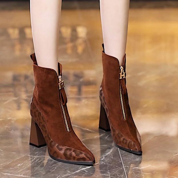 Mode högklackade korta stövletter dam 2025 höst och vinter nya Internetkändis explosion Martin-kängor tjock klack spetsiga mode tunna stövletter