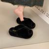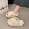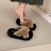 Internetskändis korsbandade fluffiga tofflor damer bär 2025 höst och vinter nya tjocka sulade höjande halkfria plysch bomullstofflor