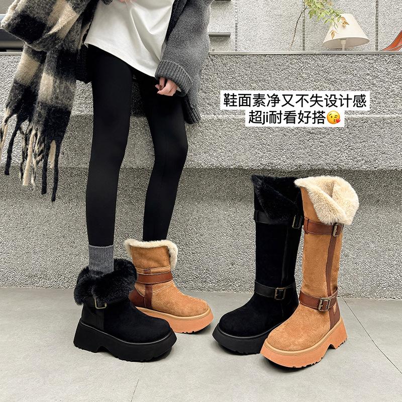 Maillard stora hår två bär snöstövlar 2025 vinter mocka rund tå nordöstra förtjockad päls varm höjande bomullsstövlar