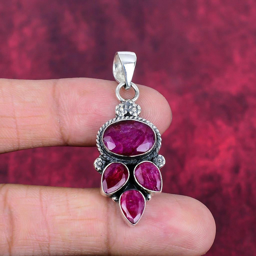 Hänge med rubin, Ädelstenssmycken, 925 Sterling Silver, Handgjort hänge, Smycken med senaste designen