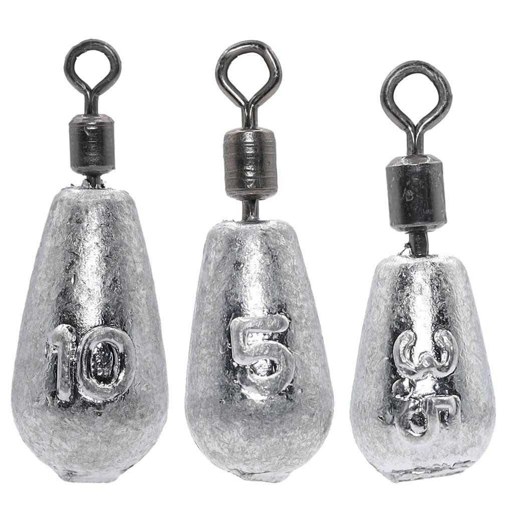 Teardrop and Eggplant Sinkers with and 20 Lead Sinkers for Sea and River Worm Rig Fabulous-do Swivels, 3.5g, 5g, 10g, each, Fishing,