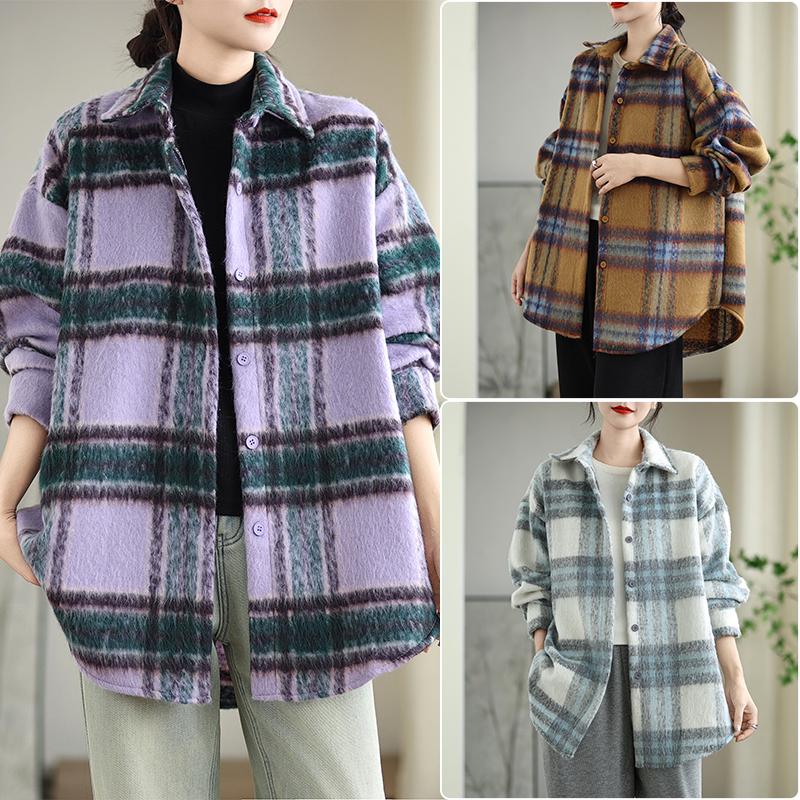 DIMANAF 2025 New Autumn Winter Plus Size Women Coats Jackets Loose Casual Outerwear Vintage Lady Plaid Cotton Thick Long Sleeve