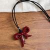 1 st Ankola Rött Rosett Halsband Dam Minimalistisk Tröjkedja Nisch Mångsidig Svart Lädersnöre Tillbehör