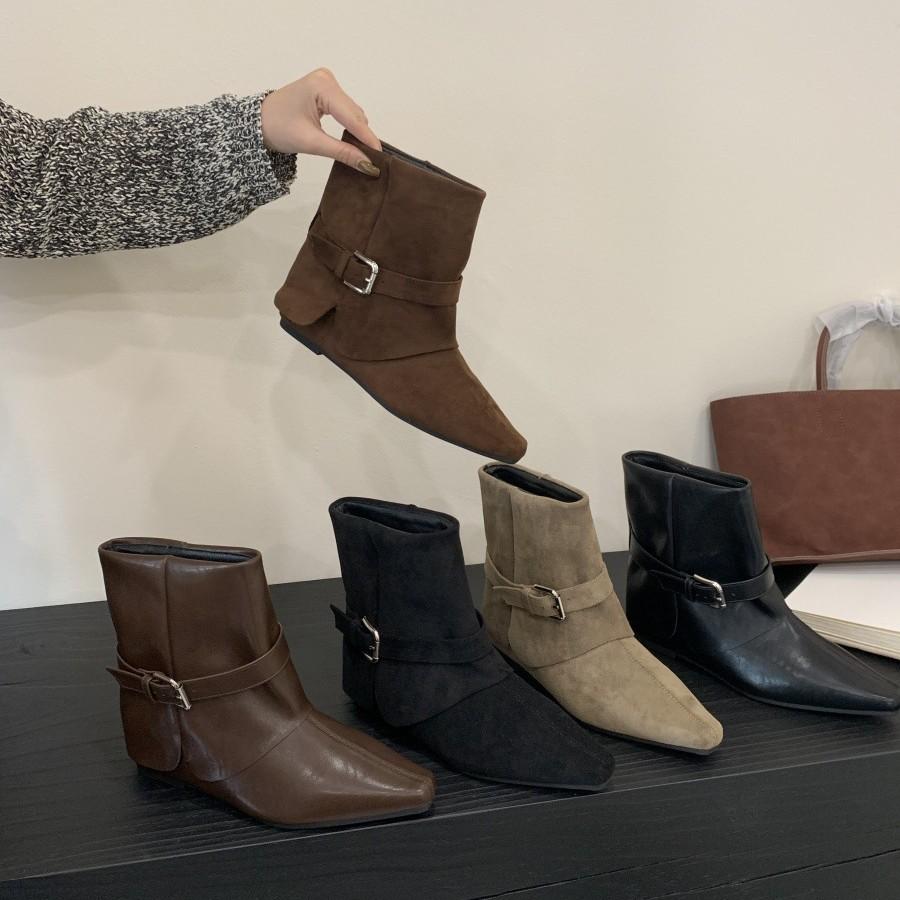 Sudingjia Korean version of pointed suede belt buckle fashion boots for women's 2025 new thin inner height-increasing sleeve fashion boots