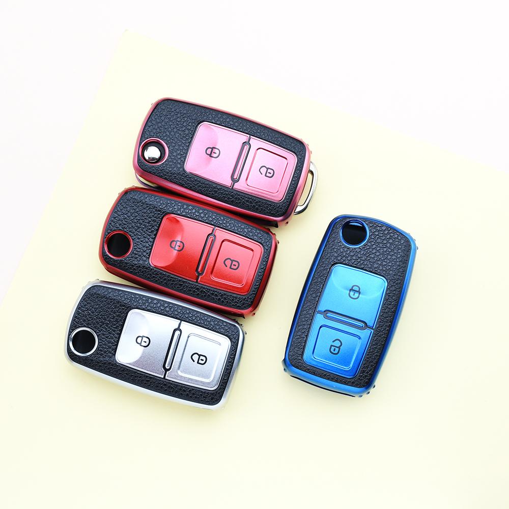 2 Knappar Skal För VW Volkswagen Passat B5 B6 B7 Polo Jetta Lavida Tiguan Golf 4 5 6 MK6 för Skoda Octavia TPU Läder Bilnyckelfodral Skydd