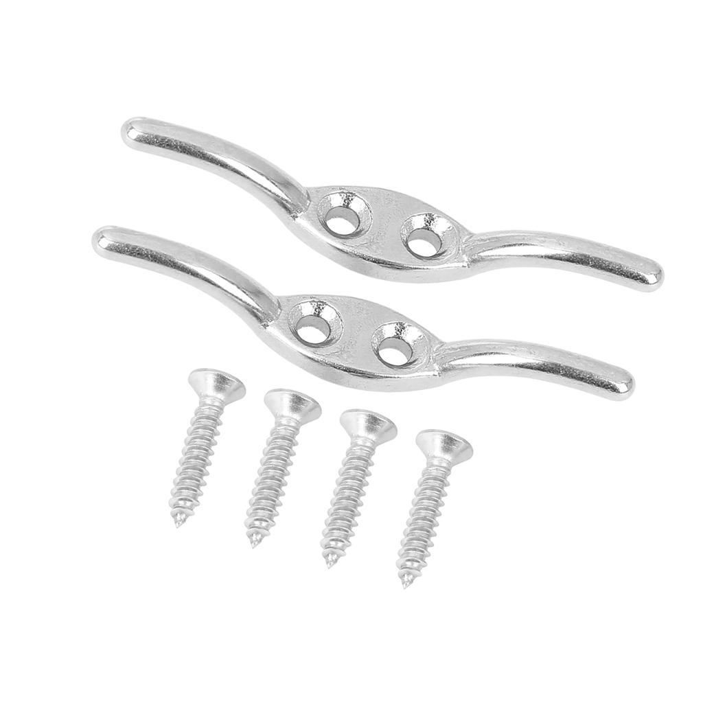 ACROPIX Rope Boat Deck Flag Pole Cleat Hooks 316 Stainless Steel with 4 Mounting Screws 51mm Silver Tone 2pcs