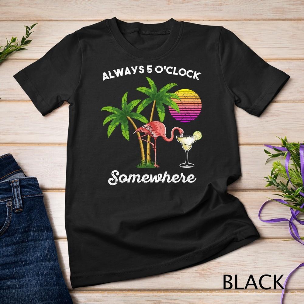 Klockan fem någonstans dricker flamingo Unisex T-shirt