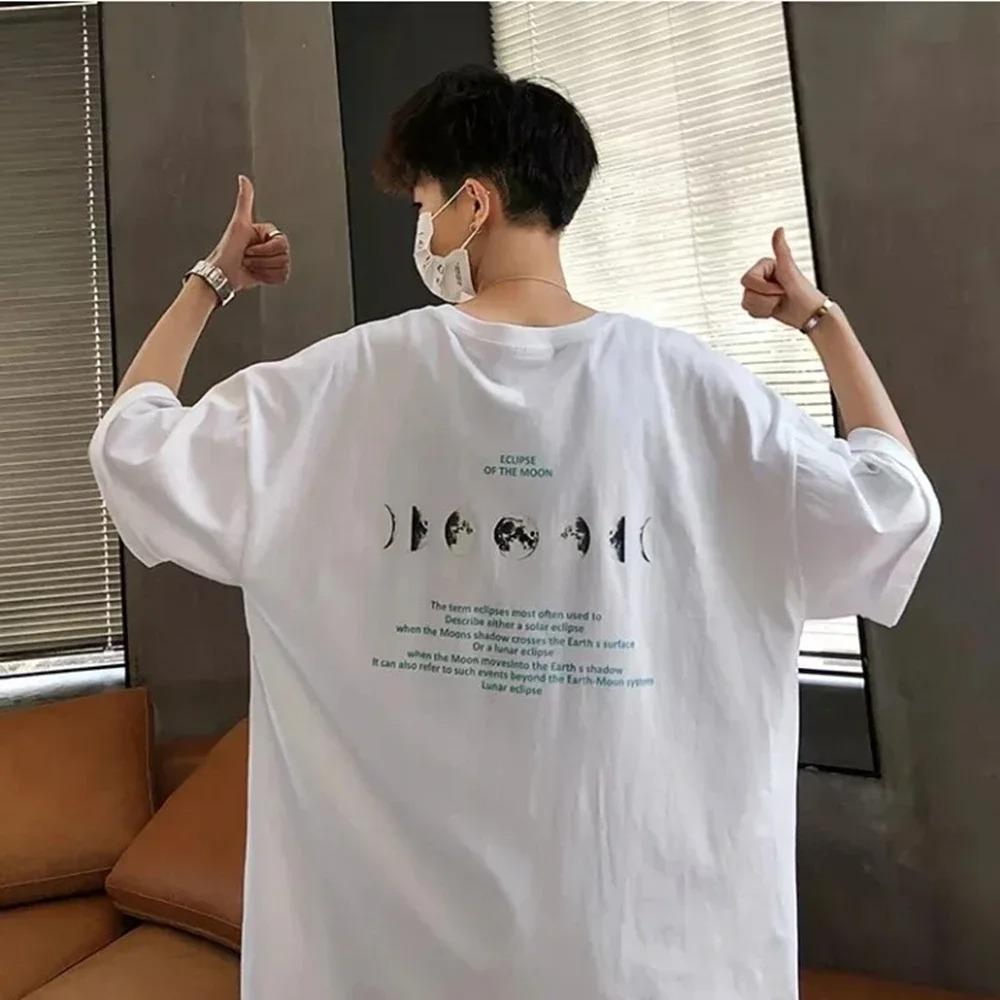 Men's T Shirt Oversized Streetwear Hip Hop Loose Fashion Korean Short Sleeve Moon Printed Couple Clothes Streetwear 51531