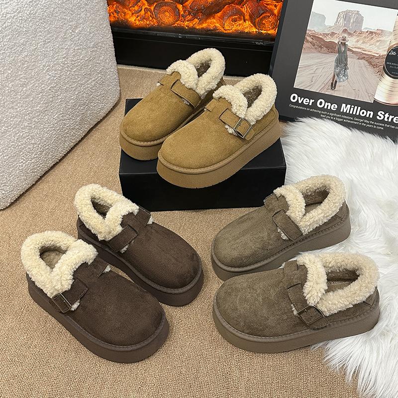 En fot tjock-sulade snökängor för dam 2025 vinter nya påhögade och förtjockade pälsintegrerade höjande nordöstra bomullsskor