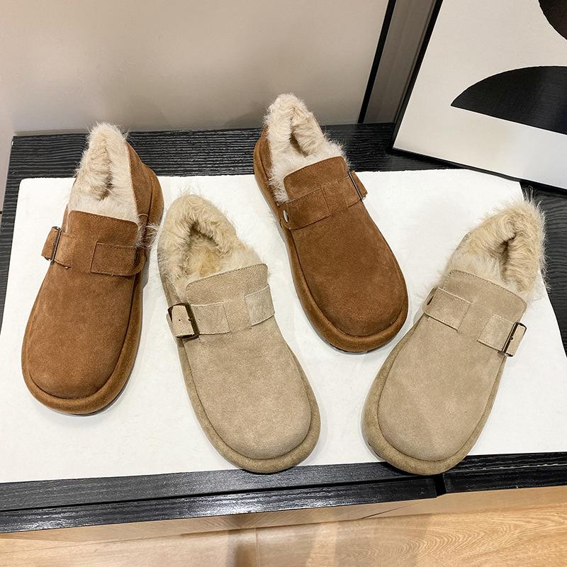 Boken Snow Boots Women's Doudou Shoes 2025 New Autumn and Winter Versatile Flat Bottom Fluffy Thickened Warm Cotton Shoes