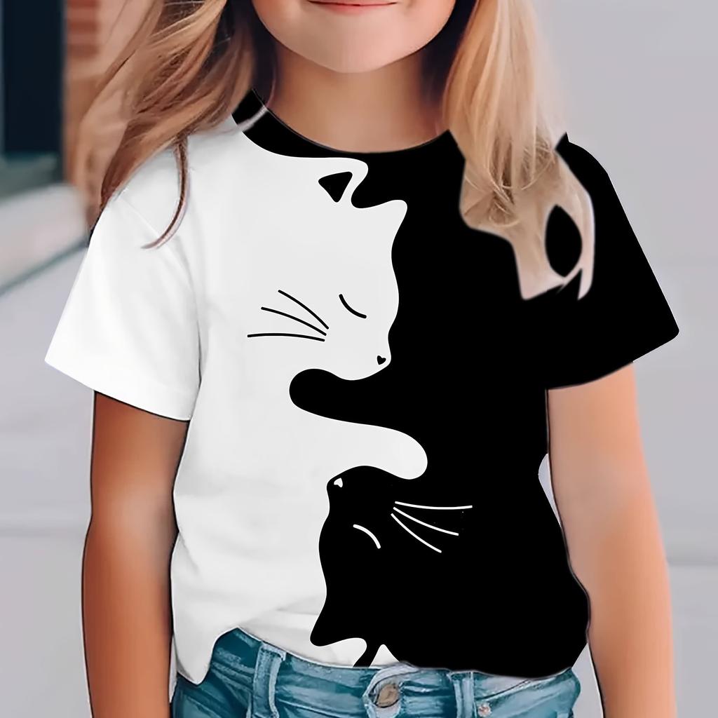 Taiji Cat 3D Digital Print Creative Short-Sleeve T-Shirt, a Casual, Lightweight, And Breathable Top for Outdoor 'S Wear.