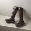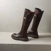 Korean version of rubber sole thick sole non-slip solid color Martin boots rear zipper comfortable middle heel round head autumn and winter hi