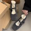 Inner heightening retro Mary Jane fluffy shoes women's shoes 2025 autumn and winter new outer wear Doudou shoes velvet single shoes