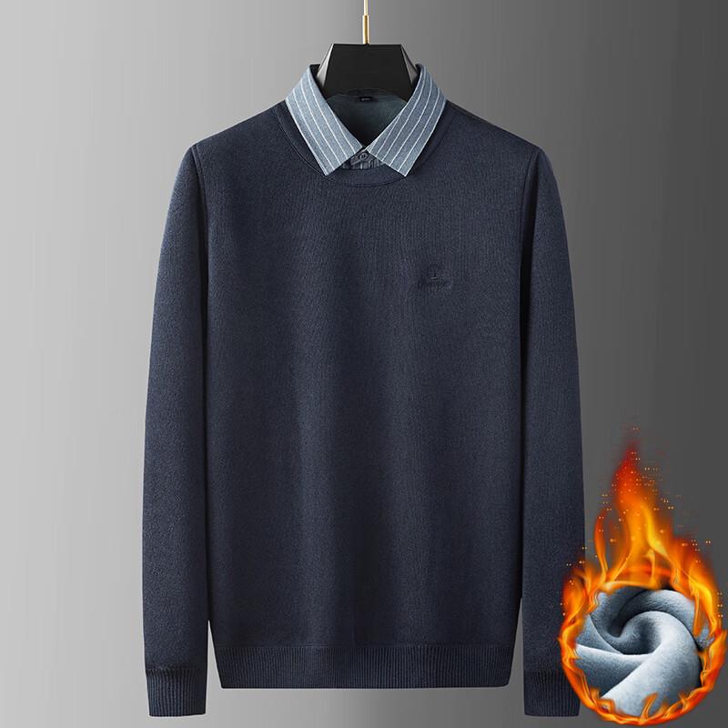 Men's Plus Size Fleece-Lined Faux Two-Piece Lapel Knit Shirt