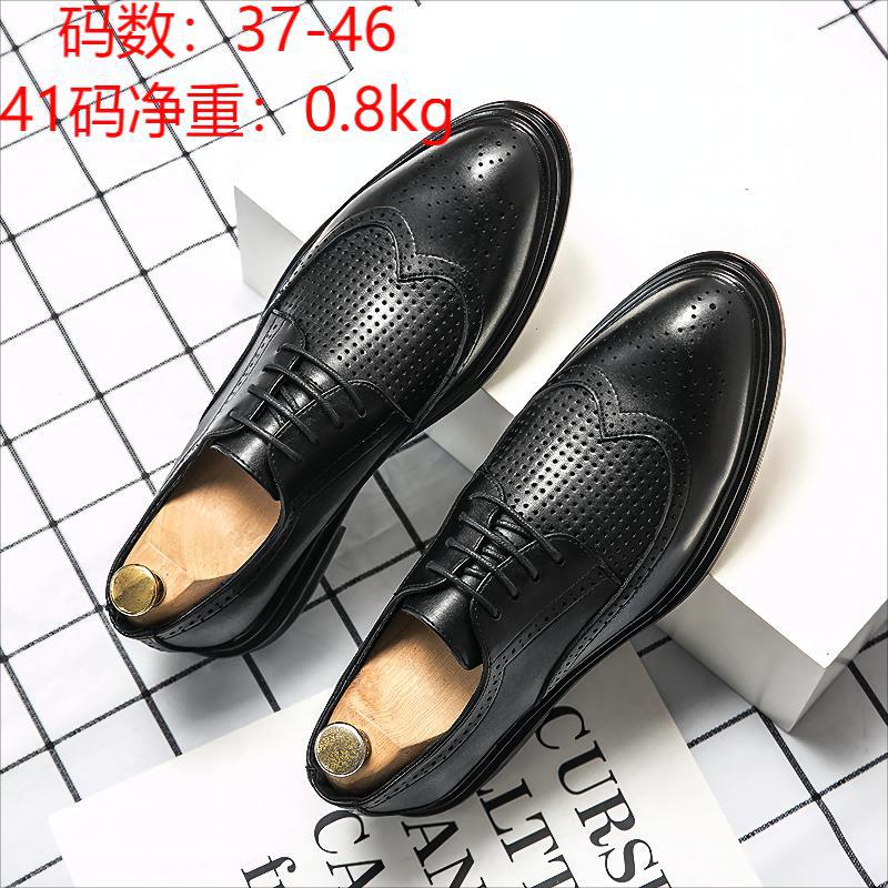 Summer brown leather shoes men's brock business punching breathable shoes heightening casual British soft soles wedding groom
