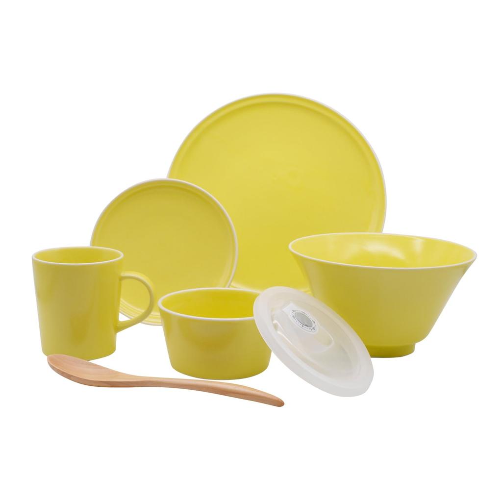 Aito Seisakusho Mino Ware Dinnerware Set for Single Dishwasher and Microwave Made in "Ciel" Set, 6-Piece Living, Yellow, Safe, Japan, 567-508