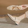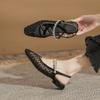 Fårskinnsversion~ 2025 kort klack tofflor för utomhusbruk med medium klack fyrkantig tå tjock klack modesandaler mångsidiga lediga muller-skor dam